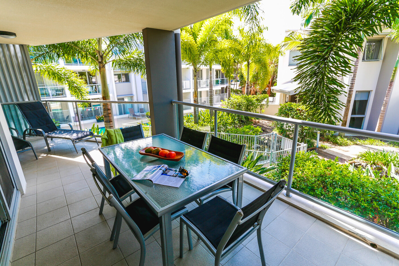 Relax in the open plan living area which leads onto a large outdoor wrap-around balcony or courtyard. The spacious layout offers two separate bedroom wings and boasts all the comforts of home, including: